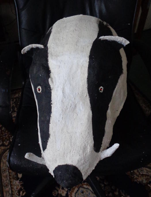 (met twee fiets-achterlichten in de ogen)